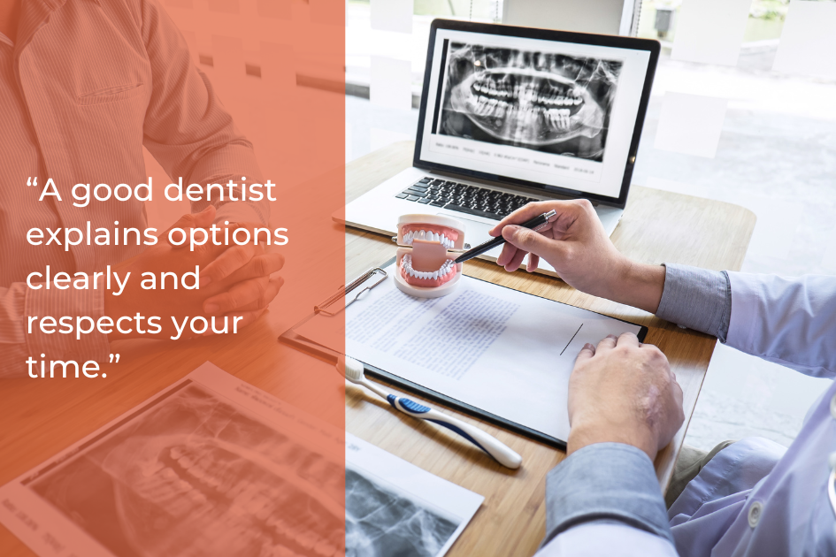 We prefer dentists who review options, costs, and maintenance, then personalize care we can sustain.