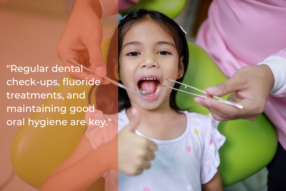 Regular dental check-ups, fluoride treatments, and maintaining good oral hygiene are key. Encourage your child to brush and floss regularly, and monitor their intake of sugary foods. Ensuring your child gets enough fluoride, either through toothpaste or supplements, is also vital.