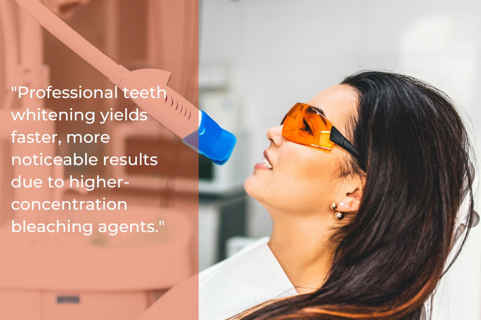 Although professional teeth whitening and at-home methods both aim to brighten your smile, they differ significantly when it comes to efficacy and outcomes. Professional teeth whitening typically yields faster, more noticeable results due to the higher-concentration bleaching agents used. It also allows for customization based on your desired shade.
